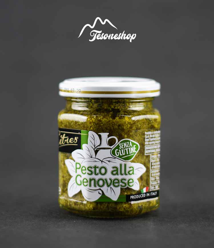 Contiene basilico, Parmigiano Reggiano e aromi di aglio. Utilizziamo solo ingredienti di prima scelta, senza l'aggiunta di addensanti e completamente privi di glutine.