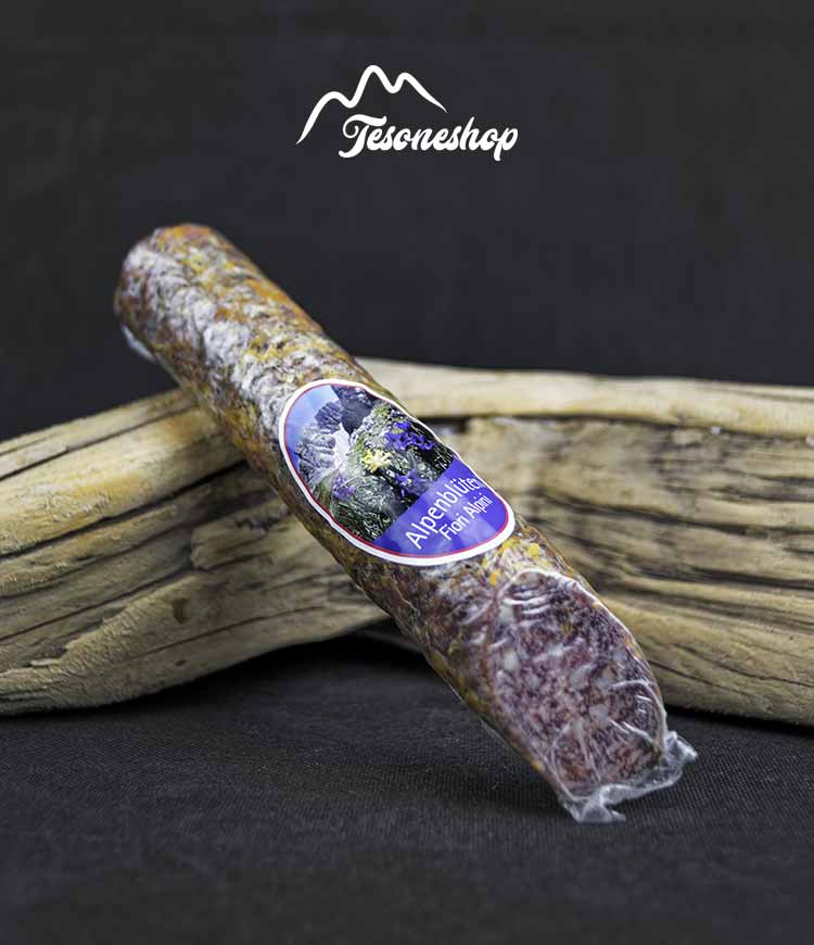 Salame da 200 g circa I salami con spezie Kofler Delikatessen sono prodotti con carne suina. A questa vengono aggiunti i caratteristici mantelli di fiori colorati, di erbe aromatiche e di pepe; per poi passare alla stagionatura all’aria di montagna. Senza glutine e lattosio.